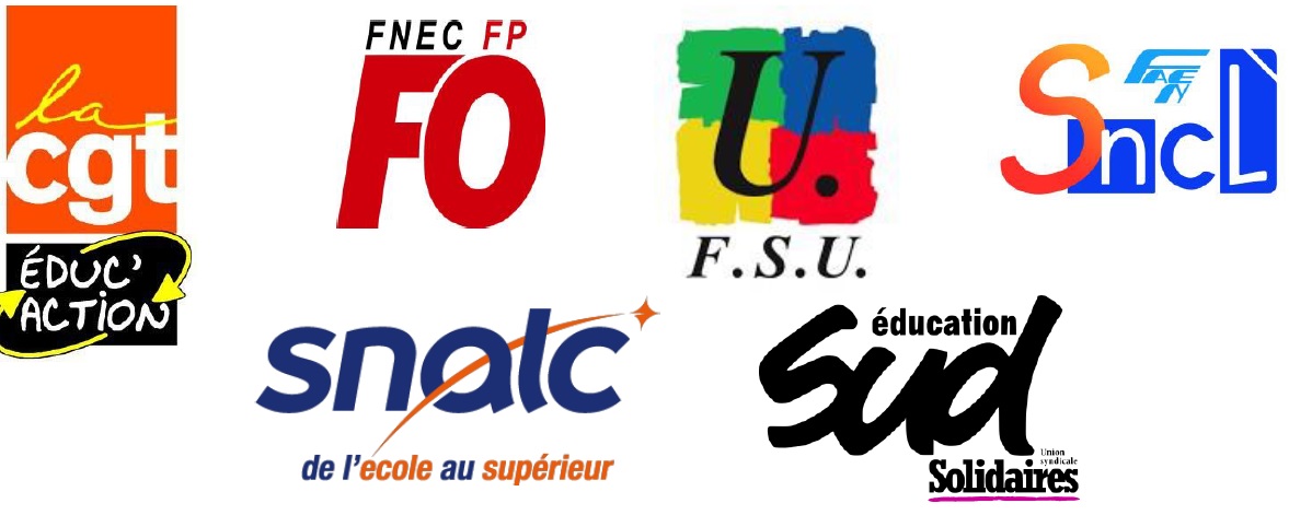 Les syndicats CGT éduc’action, FNEC-FP-FO, FSU, SNALC, SNCL-FAEN, SUD éducation :