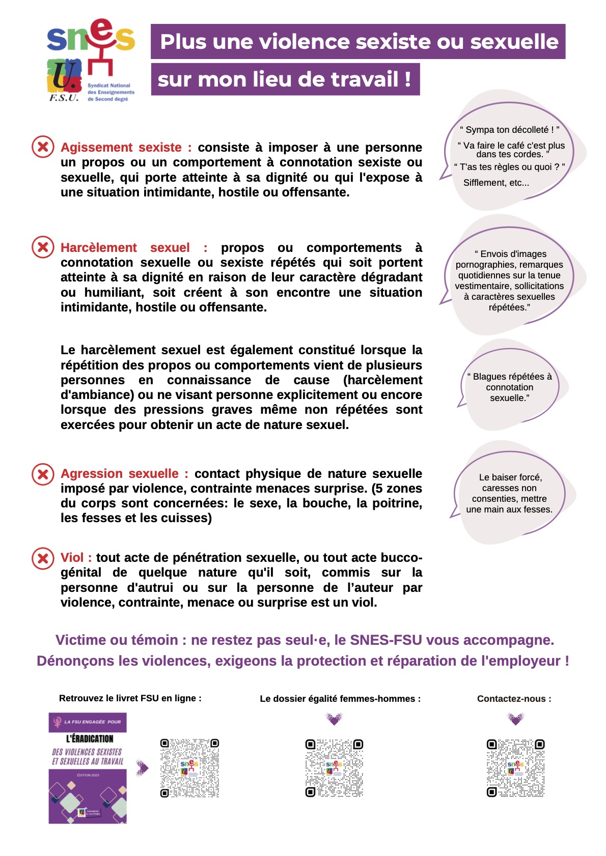 Le SNES FSU Aix Marseille est engagé dans ces luttes à tous les niveaux : en participant aux mobilisations en solidarité avec les femmes du monde entier qui se soulèvent pour leurs droits, en obtenant auprès du ministère un dispositif de recueil et d’écoute, qui nécessite encore des moyens pour être pleinement efficace, mais aussi en interne, où une cellule de veille est disponible pour les victimes.