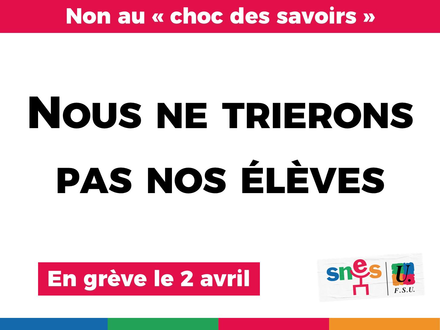 L’appel du congrès de la Rochelle est clair : « Nous ne trierons pas nos élèves ! »